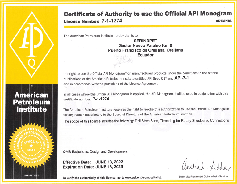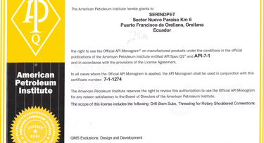 La certificación API-7-1 establece los estándares para los equipos de perforación utilizados en la industria petrolera y de gas. Esta certificación abarca una amplia gama de equipos de perforación, como herramientas de perforación, brocas, tuberías de perforación y otros componentes esenciales. Los equipos certificados API-7-1 cumplen con los requisitos de diseño, fabricación y rendimiento establecidos por el API, asegurando su calidad y confiabilidad en operaciones de perforación.